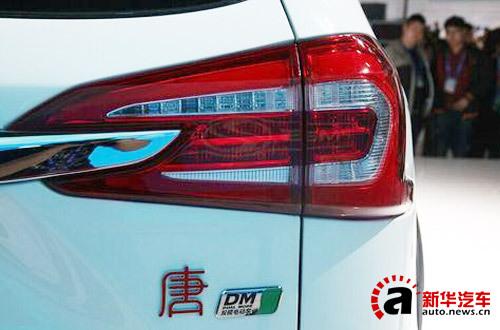 新车尾部造型同样十分有个性,U形尾灯与镀铬饰条形成一体,双边的镀铬包边尾排设计同样十分抢眼。新车尾部标有“唐”的标识和“DM双模”标识。