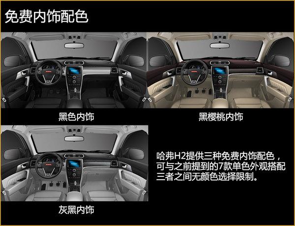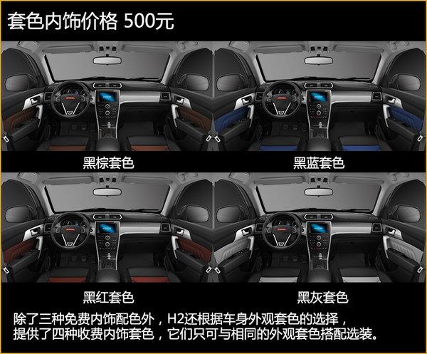 哈弗H2的内饰设计风格完全可以用有质感一词来形容,它一改自主品牌车型在内饰设计上比较粗糙的固有印象,对于哈弗品牌自身而言也是一次突破。哈弗H2提供三种免费内饰配色,可以与前面提到的呃7款单色外观搭配,也可与套色外观搭配。除此之外,还提供了四款套色内饰,它们的颜色选择要与外观套色相搭配,不能随意DIY。