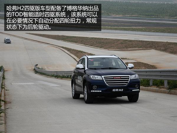 哈弗H2四驱版车型配备了博格华纳出品的TOD智能适时四驱系统,该系统可以在必要情况下自动分配四轮扭力,常规状态下为后轮驱动。哈弗H2的接近角和离去角分别为22°和27°,足以应付一般的复杂路况,满载133mm的离地间隙表现,通过性也有所保障。