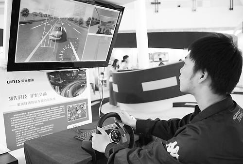图为前不久,该公司最新研发的紫光捷通智能车路协同系统亮相京城。