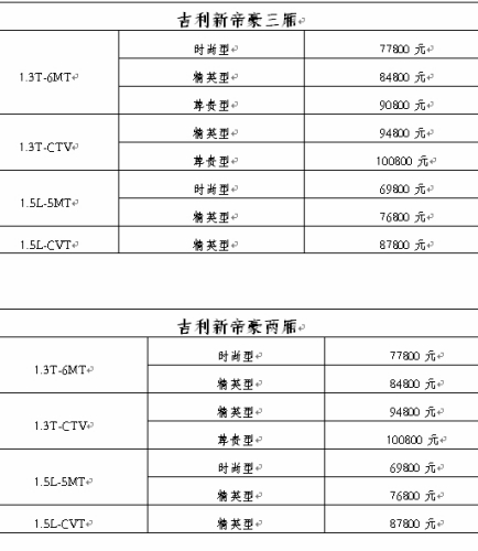 吉利新帝豪上市 售6.98万元~10.08万元