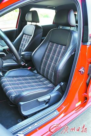GTI各种接缝用红线缝纫,方向盘后换挡拨片。座椅的包裹性要比普通版好。