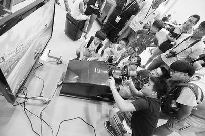 图为展会上,观众在体验模拟改装车驾驶。四 夕 摄