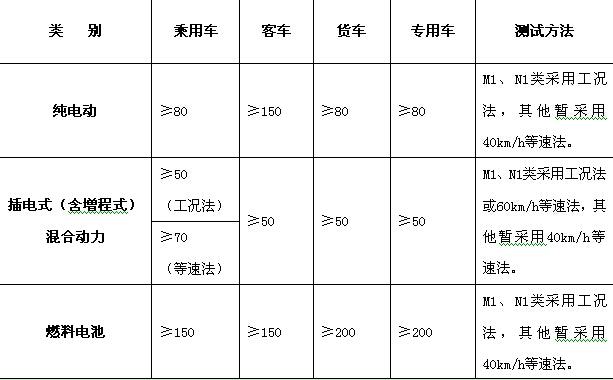 新能源汽车纯电动续驶里程要求