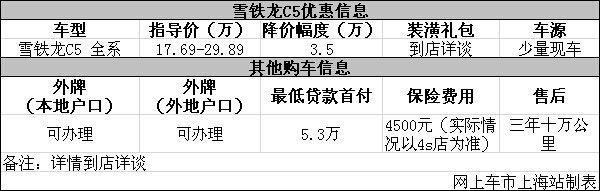 上海:雪铁龙C5全系车型优惠3.5万 少量现车