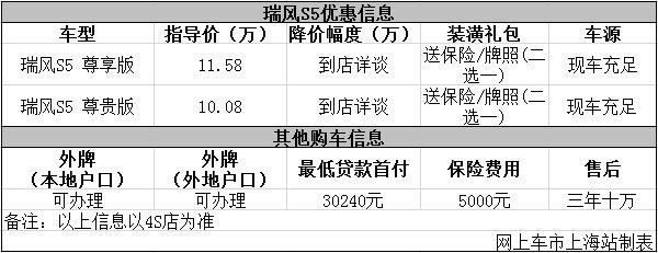 上海:江淮瑞风S5送保险或牌照 店内现车充足