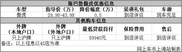 上海:斯巴鲁傲虎优惠0.5万 购车现车充足