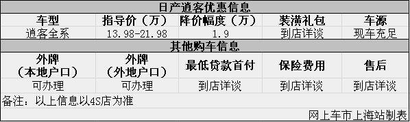 上海:日产逍客现优惠1.9万元 购车现车充足