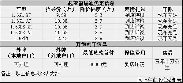 上海:起亚福瑞迪现优惠2.3万元起 现车足