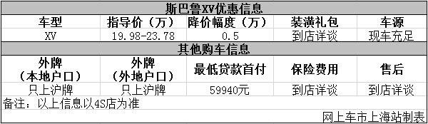 上海:斯巴鲁XV全系优惠0.5万元 店内现车充足