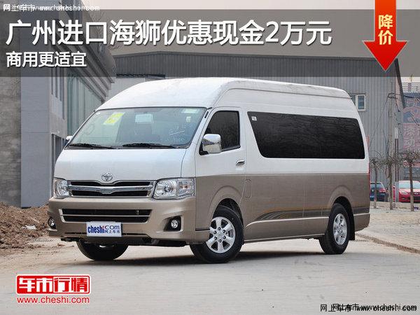 海狮车型是丰田在国内相当为人熟悉的面包车型,目前国内还有很多通过模仿其前代而售卖的车型在路上,可见其诞生对面包车市场的影响力。近日,根据网上车市价格监测系统显示,海狮现金优惠2万元。具体车型以及价格如下: