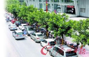 ▲金沙洲六号线浔峰岗地铁站,每天7时多路两边已经停满了车辆。记者 顾展旭 摄