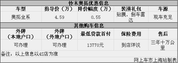 上海:铃木奥拓优惠0.55万元 送装潢礼包