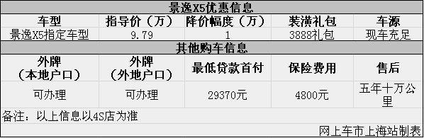 上海:景逸X5现金优惠1万元 购车送3888礼包