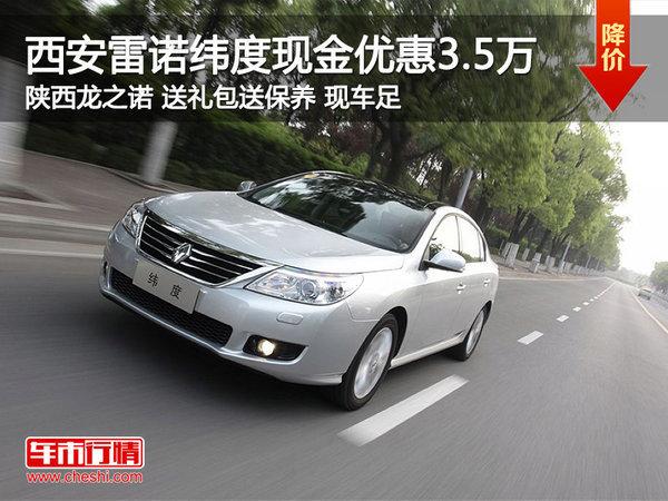 近日,据网上车市西安分站编辑从陕西龙之诺雷诺4S店获悉,雷诺--纬度现金优惠3.5万元,送装潢大礼包,全系尊享五年或十二万公里免费保养,现车充足,有意者不妨致电经销商或者到店了解更多信息。详情以及更多优惠请致电4008-112-233转2944。