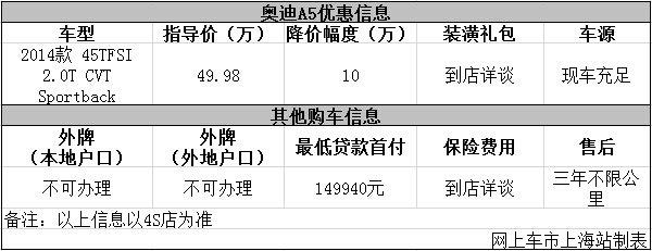 日前网上车市上海站从上海东联沪港汽车销售有限公司了解到,目前该店奥迪A5优惠出售,详情请见下表: