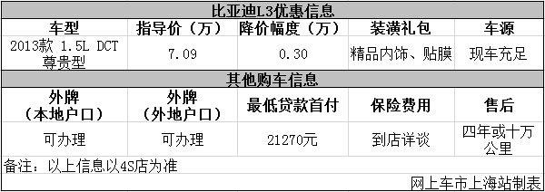 上海:比亚迪L3优惠0.3万元 店内现车充足