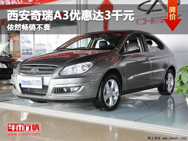 近日,据网上车市西安分站编辑从陕西瑞鑫奇瑞汽车4S店获悉,奇瑞--奇瑞A3现金优惠3000.0万元,(市场行情随时在变,具体优惠请以展厅报价为主),现车充足,有意者不妨致电经销商或者到店了解更多信息4008-112-233转2938。