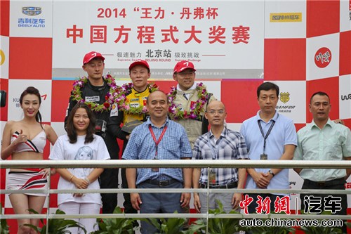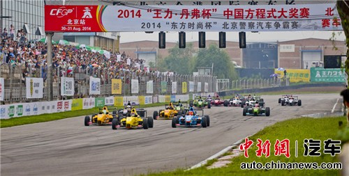 中新网9月1日电 8月31日,2014“王力•丹弗杯”中国方程式大奖赛(CFGP)北京站次回合决赛于下午的16点30分正式开跑,经过21圈的角逐,最终王力华爵车队崔岳拿下个人赛季第5冠,神州租车车队吴若鹏第二,首次登上颁奖台的王力华爵车队尚宗沂获得第三。