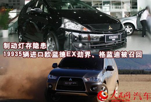 人民网记者从国家质检总局获得的最新消息:日前,三菱汽车销售(中国)有限公司向国家质检总局备案了召回计划,将自2014年9月19日起,召回部分2007-2009年款进口欧蓝德EX劲界汽车(生产日期为2007年1月18日~2009年8月29日)和2008-2010年款进口格蓝迪汽车(生产 日期为2008年5月31日~2010年11月22日)。据该公司统计,在中国大陆地区涉及19935辆。