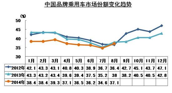 对于“12连降”的原因,业内普遍的共识是自主品牌与外国品牌有差距、增速放缓和部分大城市限购、外国品牌价格一再下探挤压等。在刚刚闭幕的2014中国汽车产业发展(泰达)国际论坛上,多位汽车大佬一致认为,除了以上大家熟知的原因之外,社会各界和消费者缺乏对中国品牌汽车了解,缺乏购买和使用中国品牌汽车的氛围也是重要因素。另有官员和车企高官更是强烈呼吁政府官员要带头乘坐自主品牌,给消费者起到示范作用。