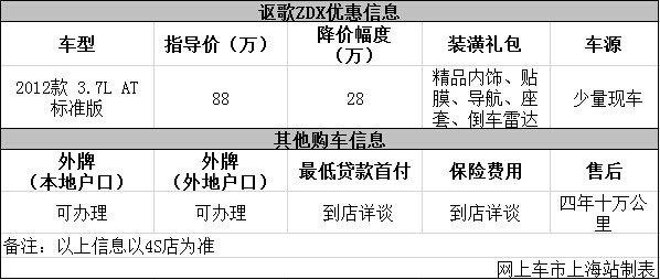 上海:讴歌ZDX现优惠28万元 购车少量现车