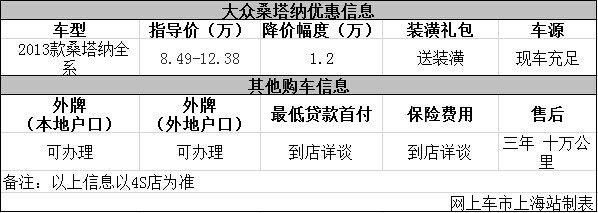 上海:大众桑塔纳优惠1.2万 购车现车充足