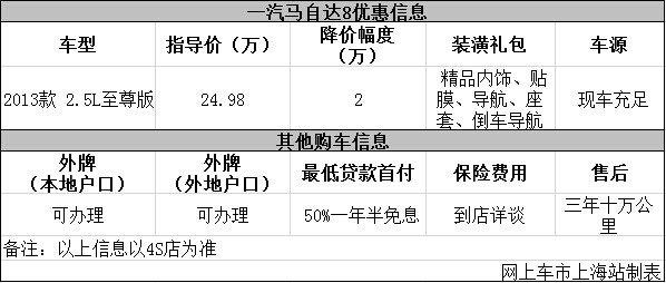 上海:一汽马自达8现优惠2万 购车现车充足