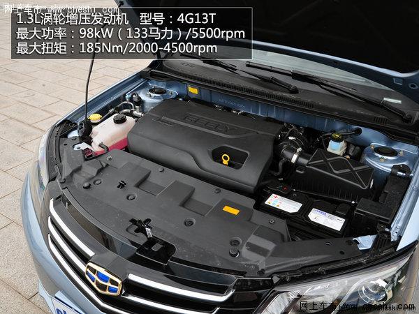 吉利新继续配备1.5L,而且还增加1.3T涡轮增压发动机取代原来的1.8L发动机。新增的1.3T发动机可输出98kW(133PS)的最大功率以及 186Nm的峰值扭矩,参数与现款1.8L自然吸气发动机不相上下。传动方面则提供了手动变速箱和CVT无级变速箱两种选择。