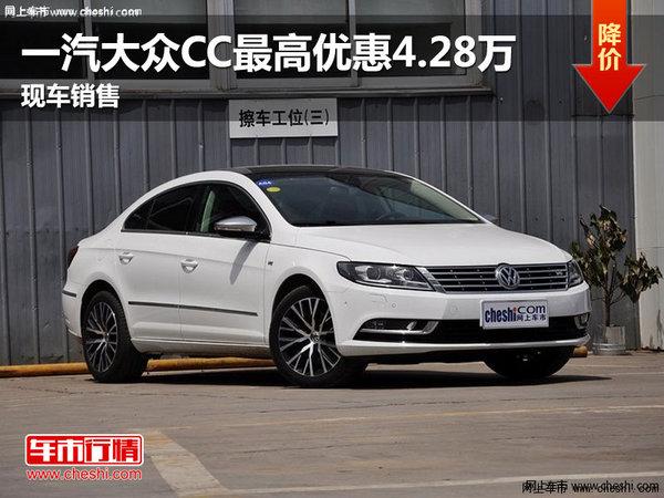 编辑从一汽大众长春4S店获悉,目前一汽大众CC最高优惠42800元。据销售人员介绍,目前长春华之诚店内CC现车充足,颜色齐全,购车无需预订。