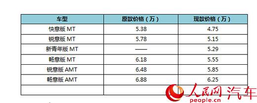 售4.75万-6.25万元 奇瑞风云2新青年版上市