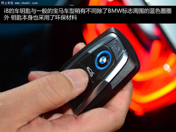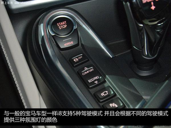 iDrive 系统的控制显示屏设计为8.8寸立式显示器。i8标配的真皮内饰包裹不仅包括座椅表面,还包括中控台、仪表盘和车门饰板的组件。