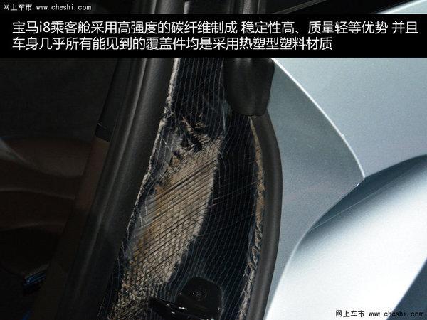 宝马i8拥有轻量化车身设计,主要包括碳纤维车身、采用碳纤维强化塑料和铝合金结构的车门、带有镁合金托架的仪表板、铝合金底盘。