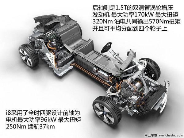 与前三款车型不同,宝马i8搭载的是一套混合动力系统,由发动机与电动机共同驱动车轮;与此同时,i8还配备了全时四驱系统。