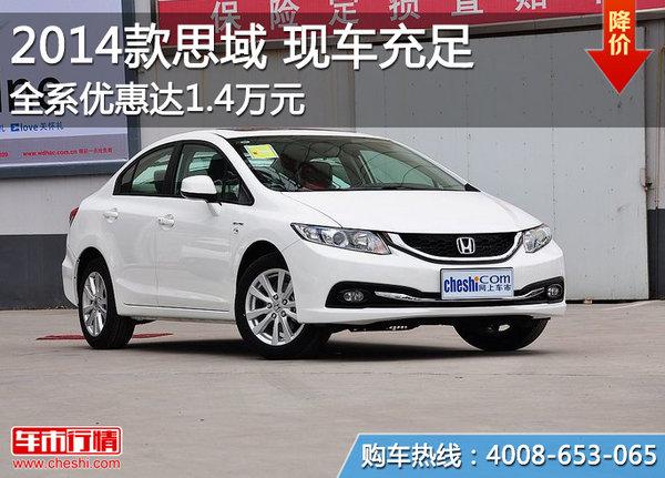 近期,编辑从东风本田北京运通博泰4S店了解到,2014款思域现车充足,颜色可选。售价方面,购车可优惠1.4万元,需加装饰礼包,分期双免,可享受置换补贴。具体如下: