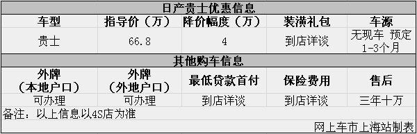 日前网上车市上海站从上海锦江4S店了解到,目前该店贵士车型优惠出售,具体信息见下表: