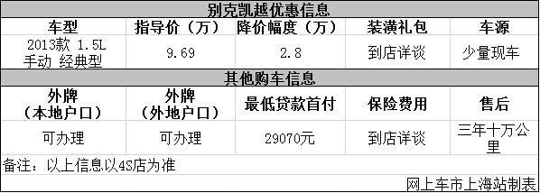 日前网上车市上海站从上海东昌别克4s店了解到,目前该店别克凯越优惠出售,详细请见下表: