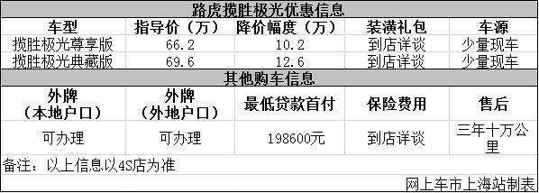 日前网上车市上海站从上海路胜4s店了解到,目前该店路虎揽胜极光优惠出售,详细请见下表: