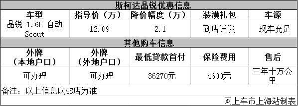 日前网上车市上海站从上海百联沪北4s店了解到,目前该店斯柯达晶锐优惠出售,详细请见下表: