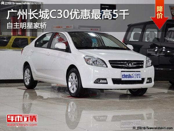 近日,根据长城汽车品牌广州地区授权经销商处获悉,现阶段下订购买2013款长城C30全系任一款车型的客户,最高可享受5千元的现金优惠,折合最低裸车价为5.95万元。到店可以了解更多优惠内容!店内库存现车数量有限,颜色可选!感兴趣的朋友不妨到店详询!具体车型以及价格如下: