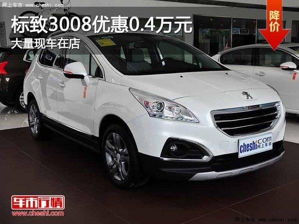 近日,编辑从重庆地区标致经销商处获悉,2014年09月24日-2014年09月27日,标致3008有大量现车在售,购车优惠0.4万元,感兴趣的朋友不妨进一步关注一下。具体优惠信息如下: