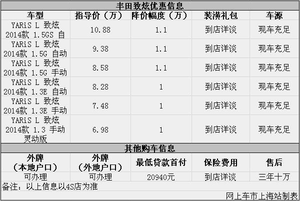 日前网上车市上海站从上海广汽丰田交运瑞金店了解到,目前该店致炫优惠出售,详细请见下表: