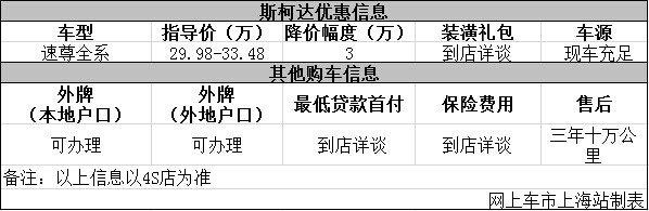 日前网上车市上海站从上海交运起成4s店了解到,目前该店斯柯达速尊优惠出售,详细请见下表: