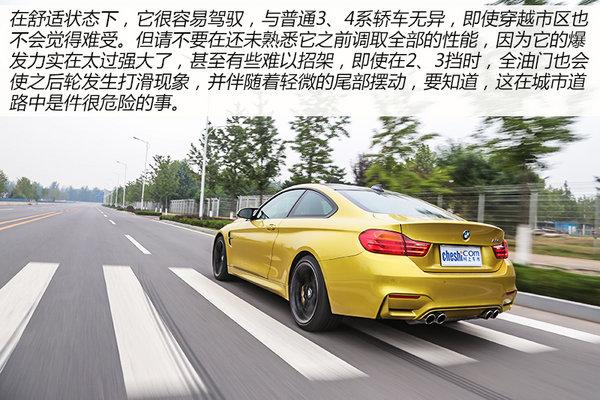 在全新M4上,你能够深刻感受到一辆性能车应有的态度与气质,它的秉性并不会在初始状态就让你察觉出来。在舒适状态下,它很容易驾驭,与普通3、4系轿车无异,即使穿越市区也不会觉得难受。但请不要在还未熟悉它之前调取全部的性能,因为它的爆发力实在太过强大了,甚至有些难以招架,即使在2、3挡时,全油门也会使之后轮发生打滑现象,并伴随着轻微的尾部摆动,要知道,这在城市道路中是件很危险的事。