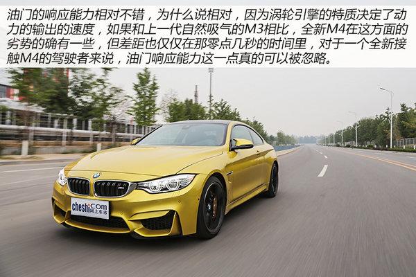 油门的响应能力相对不错,为什么说相对,因为涡轮引擎的特质决定了动力的输出的速度,如果和上一代自然吸气的M3相比,全新M4在这方面的劣势的确有一些,但差距也仅仅在那零点几秒的时间里,对于一个全新接触M4的驾驶者来说,油门响应能力这一点真的可以被忽略。