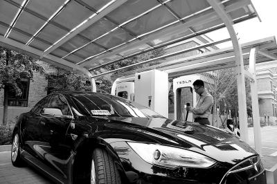 特斯拉在望京的超级充电站。记者 吴镝摄