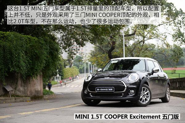我们抽到的这台1.5T MINI五门车型属于1.5T排量里的顶配车型,所以配置上并不低,只是外观采用了三门MINI COOPER顶配的外观,相比2.0T车型,不在那么运动,也少了很多运动包围。