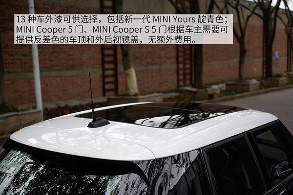 第一代MINI五门车型包括了13种车外漆可供选择,包括新一代 MINI Yours 靛青色;其中MINI Cooper 五门,MINI Cooper S五门根据车主需要可提供反差色的车顶和外后视镜盖,无需支付额外费用。