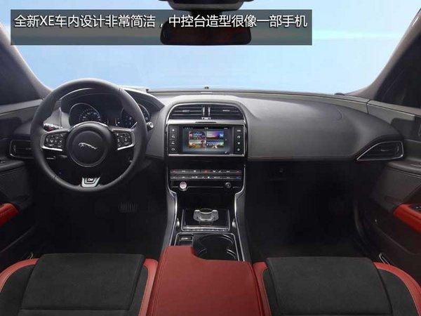 内饰方面,全新XE车内设计非常简洁,中控台造型很像一部手机,配置上捷豹XE配备了最新的All Surface Progress Control(ASPC)全路况自适应控制系统、激光平视显示系统(HUD)、自适应巡航、自动泊车系统、近车感应、盲点监测、倒车盲点监测、自动紧急制动、交通信号识别、及车道偏离警告的功能。另外,捷豹XE还搭载了车联网技术的InControl信息娱乐系统。