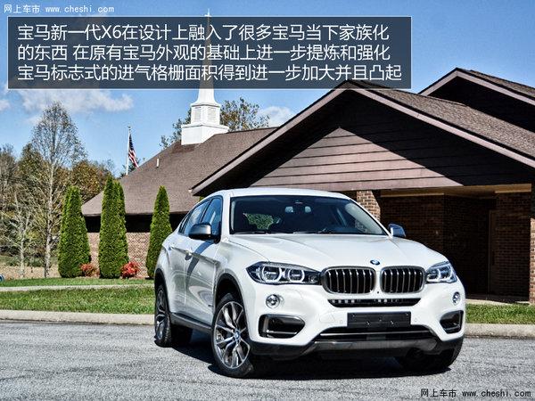 宝马新一代X6在设计上融入了很多宝马当下家族化的东西。在原有宝马外观的基础上进一步提炼和强化,宝马标志式的进气格栅面积得到进一步加大并且凸起,使得这款车的辨识度得到了提升,整车的感觉更富现代艺术与立体感。